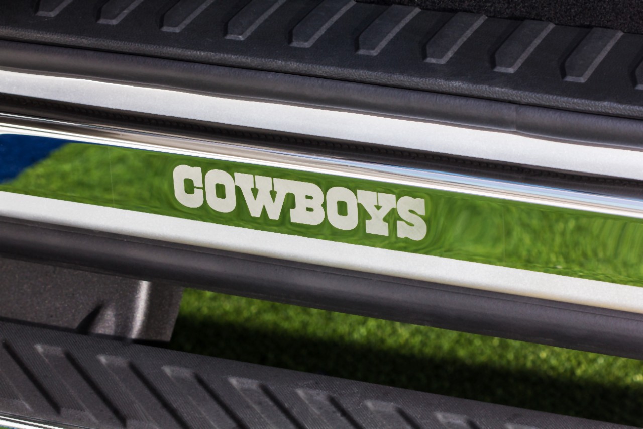 -Blue-white-blue rocker panel striping modeled after the stripe on the Cowboys’ helmets