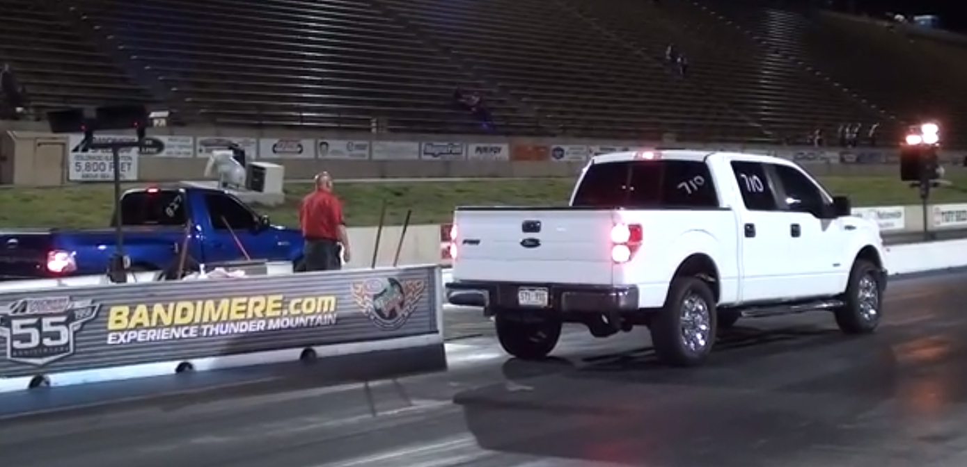 There’s several years of engineering difference between these two, but I’d still anticipate the Lightning pulling the Ecoboost were it stock against stock. It weighs less and superchargers don’t have to build boost like turbos do. The Ecoboost has a tune and a catback though, which is what makes this race interesting. Who comes out ahead? Watch the video to find out.