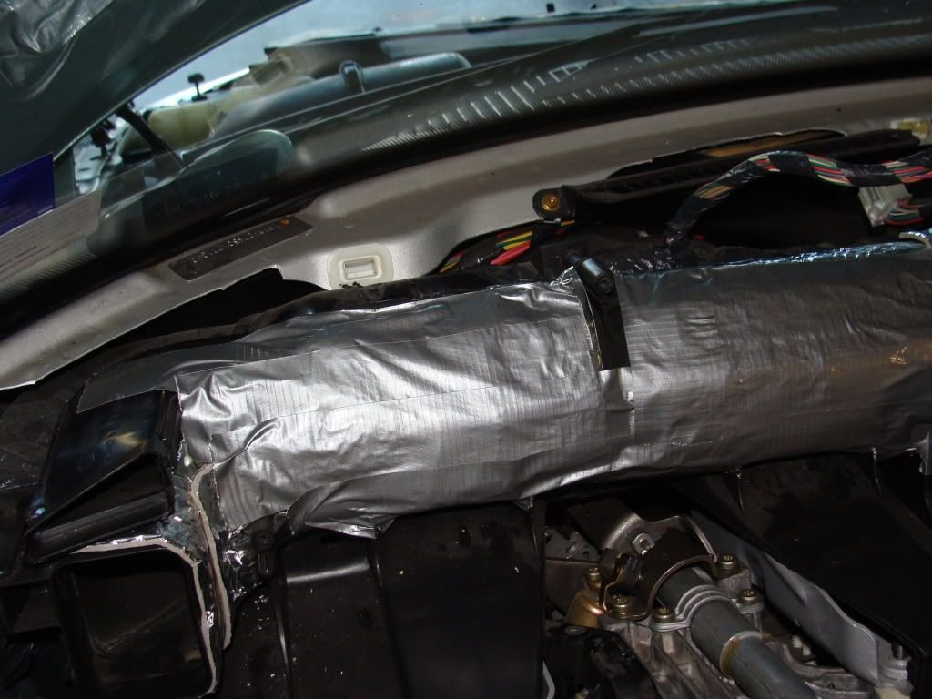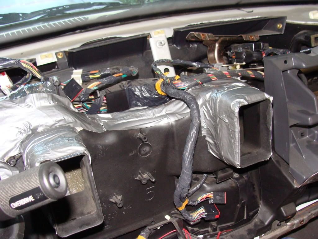 I wanted to wrap my AC ducts with insulation while i had the dash out, unfortunately the inner dash support is also the ducts, so didnt really wrap all the way around them like i had invisioned. But was able to wrap the tops which would be most important from the hot dash. Also wrapped the bulk head behind the radio which can get quite warm as well.