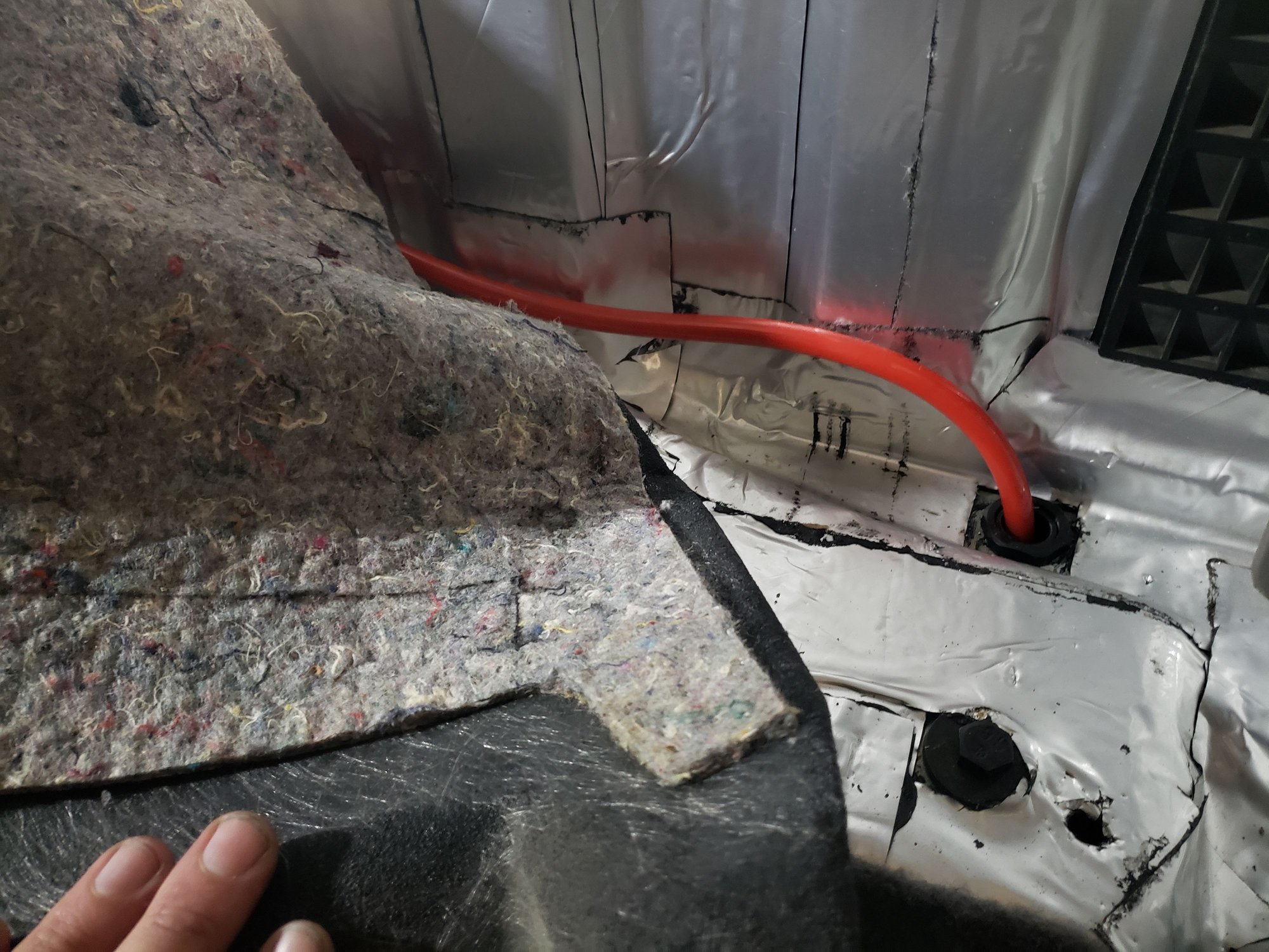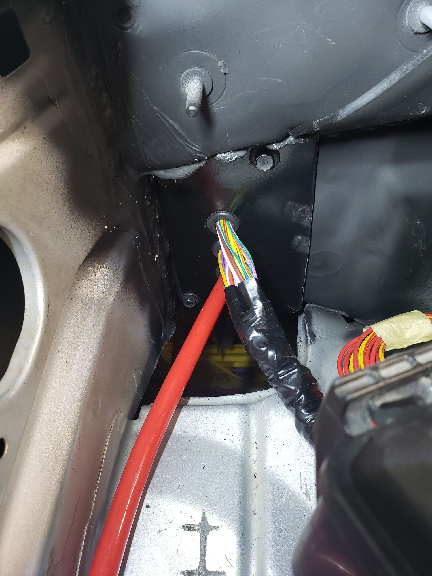 Drilled and test fitting grommets. I'll have two grommets for the body harness, and the bottom one for the main power cable for battery relocation
