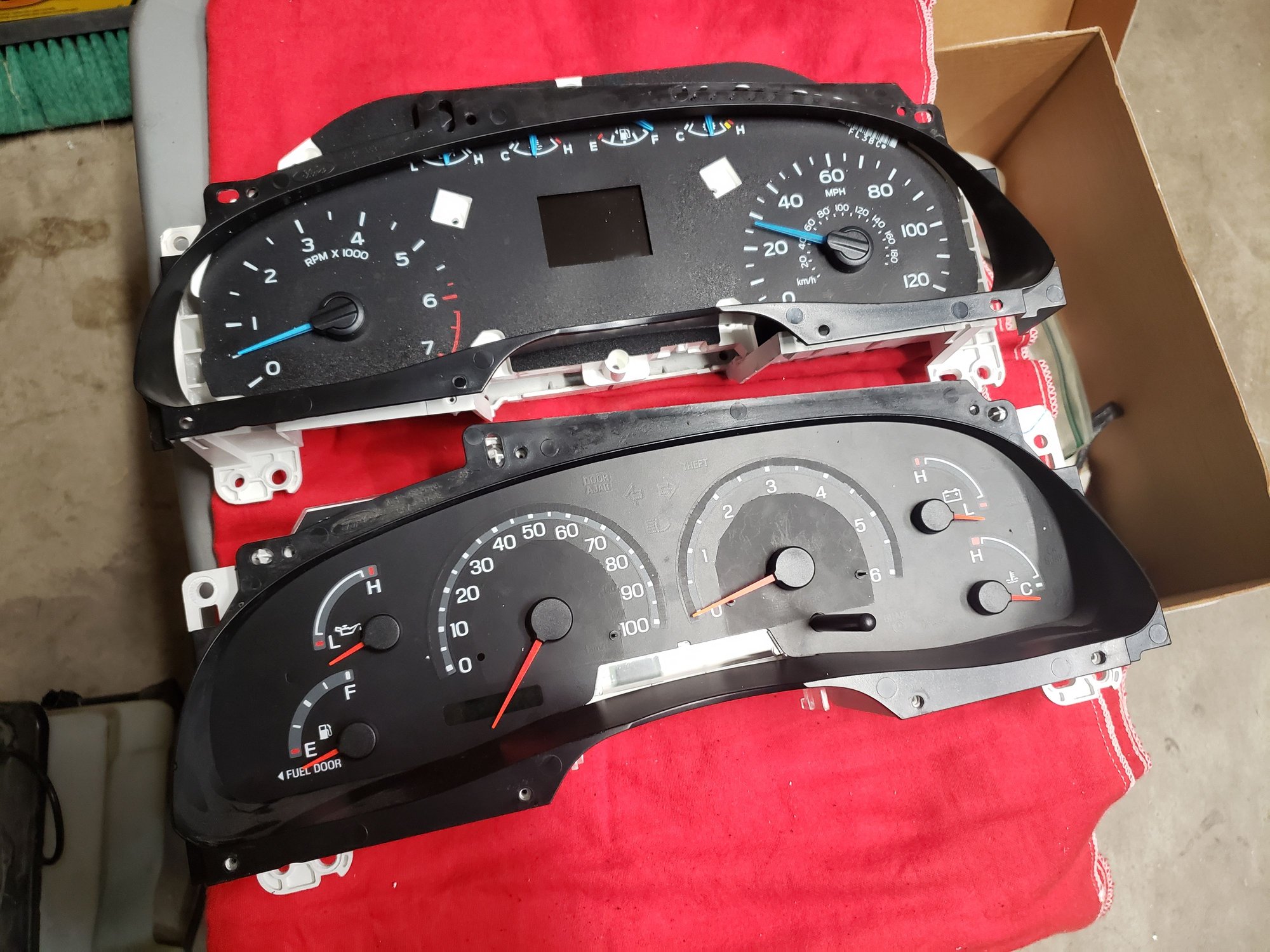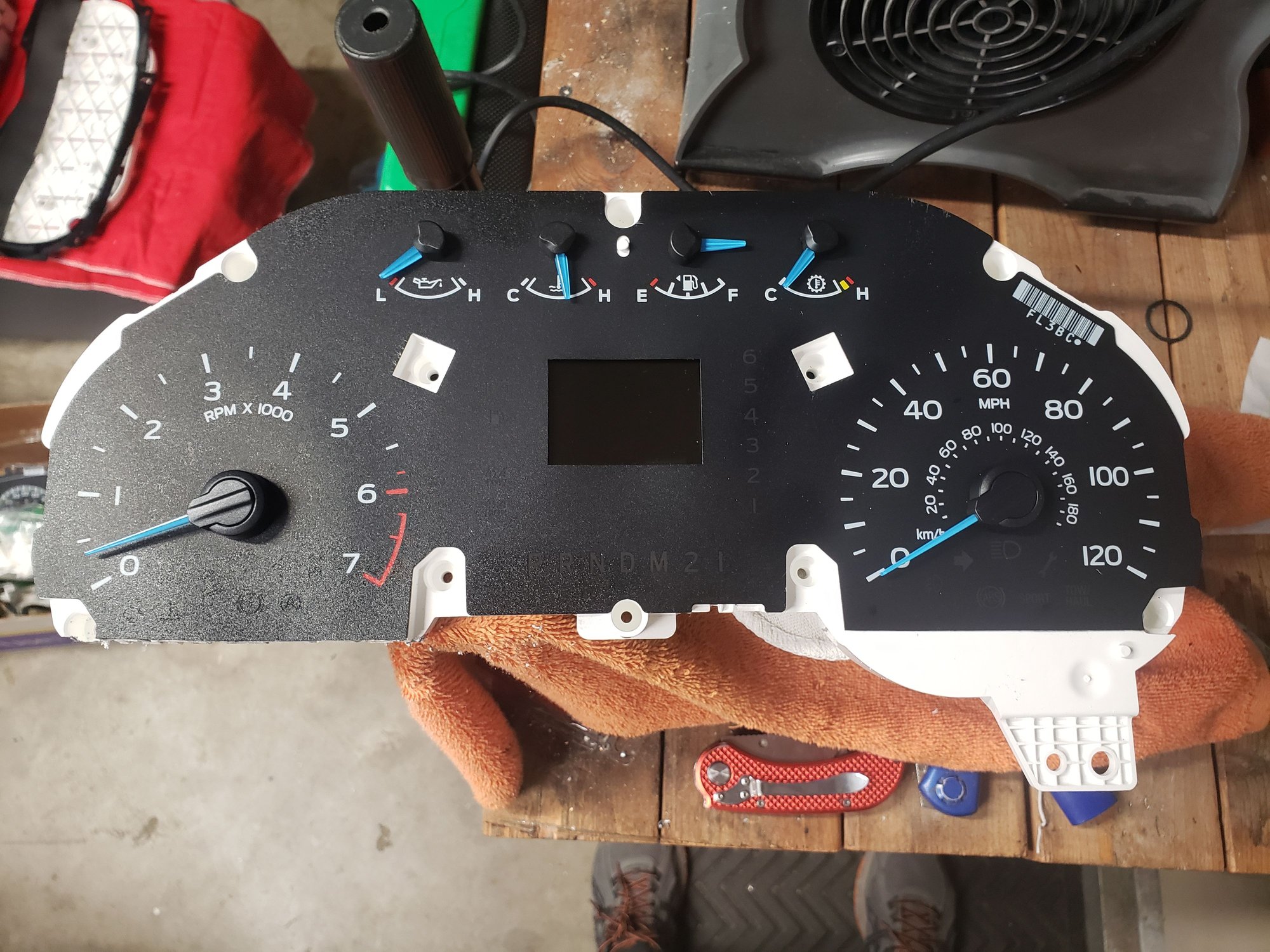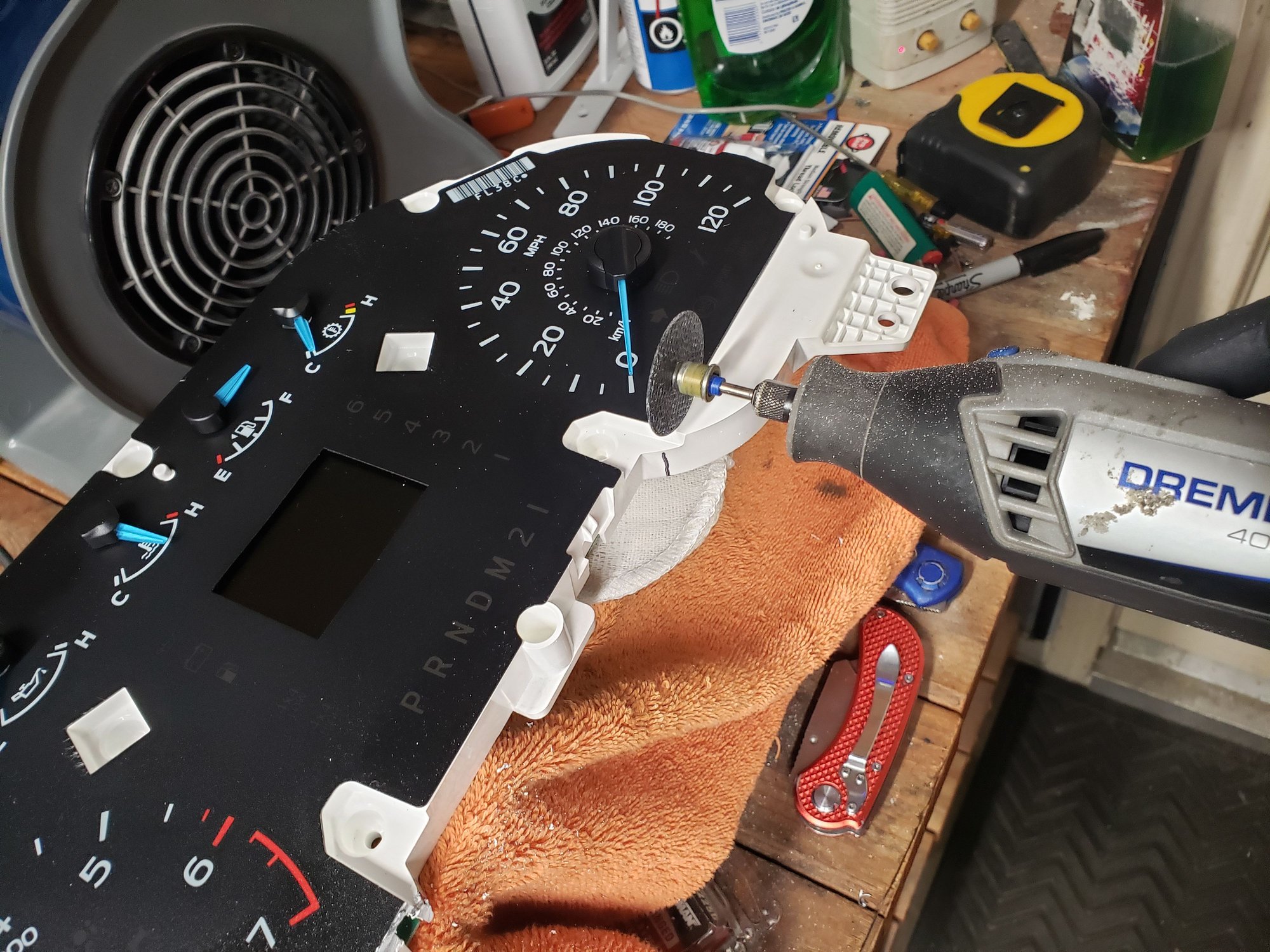 Sat the bezel on top of the now heavily modified cluster. I'm also cutting up the back of a spare 2003 cluster I have to be [hopefully] able to use factory dash mounting points.....