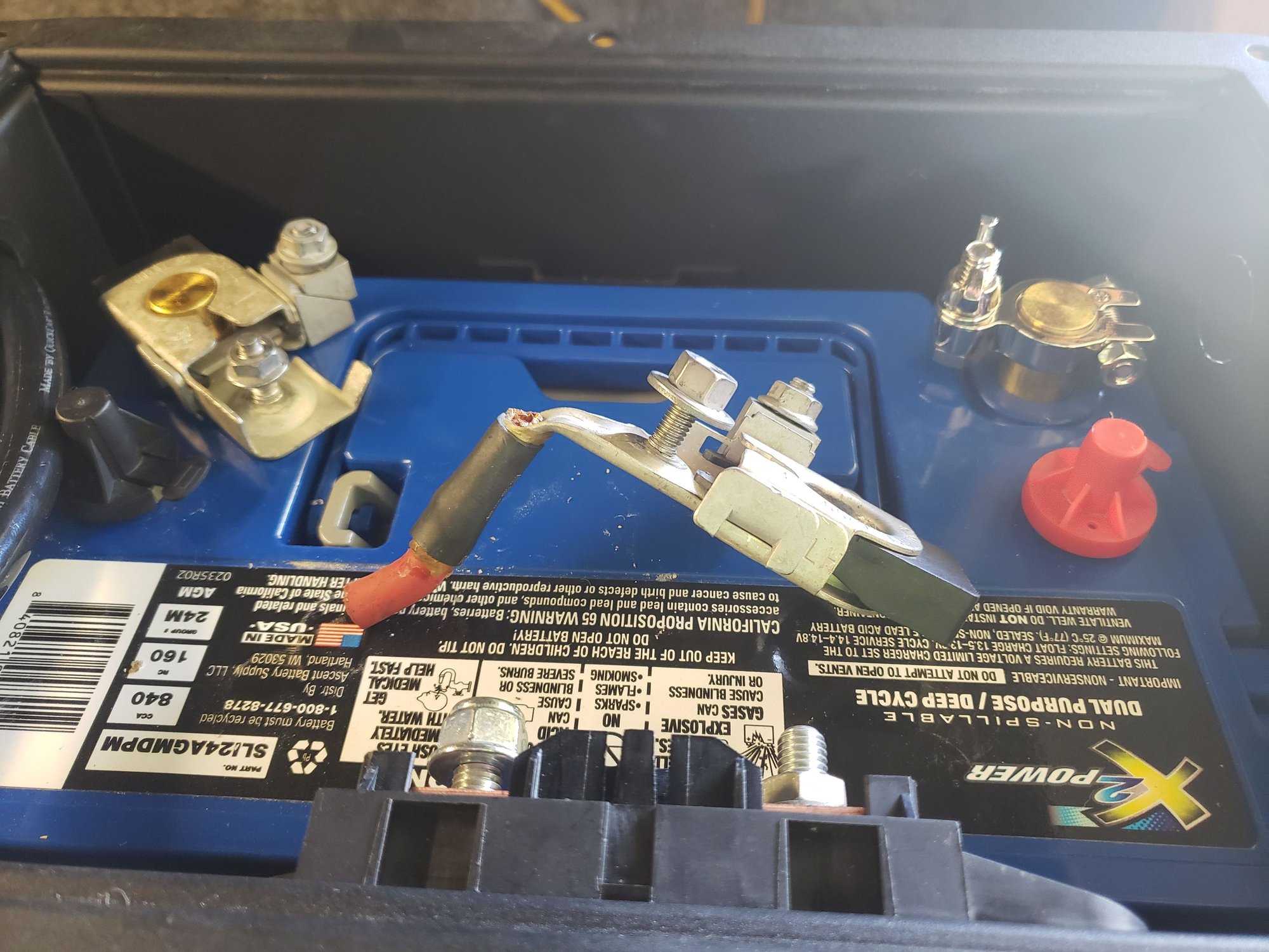 Nothing gets thrown away. This is the original 2015 battery cable which I cut off to add a crimp connector to. It will now be reused in the battery box. The battery terminals that came with the relocation cable kit are too tall to fit under the box lid. I would have had to change the hardware out and/or modify them. Using factory terminals streamlined that process for me.