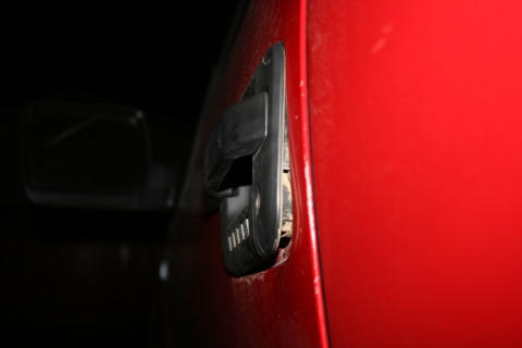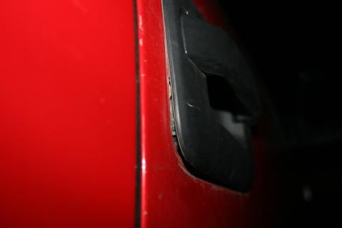 Driver Side, you can see where they first started prying at the door: