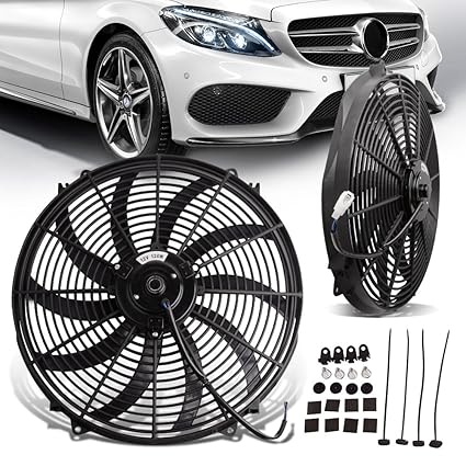 12v High Performance Black Electric Radiator Cooling Fan Assembly Kit Pro-Cool Reversible Heavy Duty S-brade Engine Fan Mounting Set (Diameter 16.73" Depth 3.26")