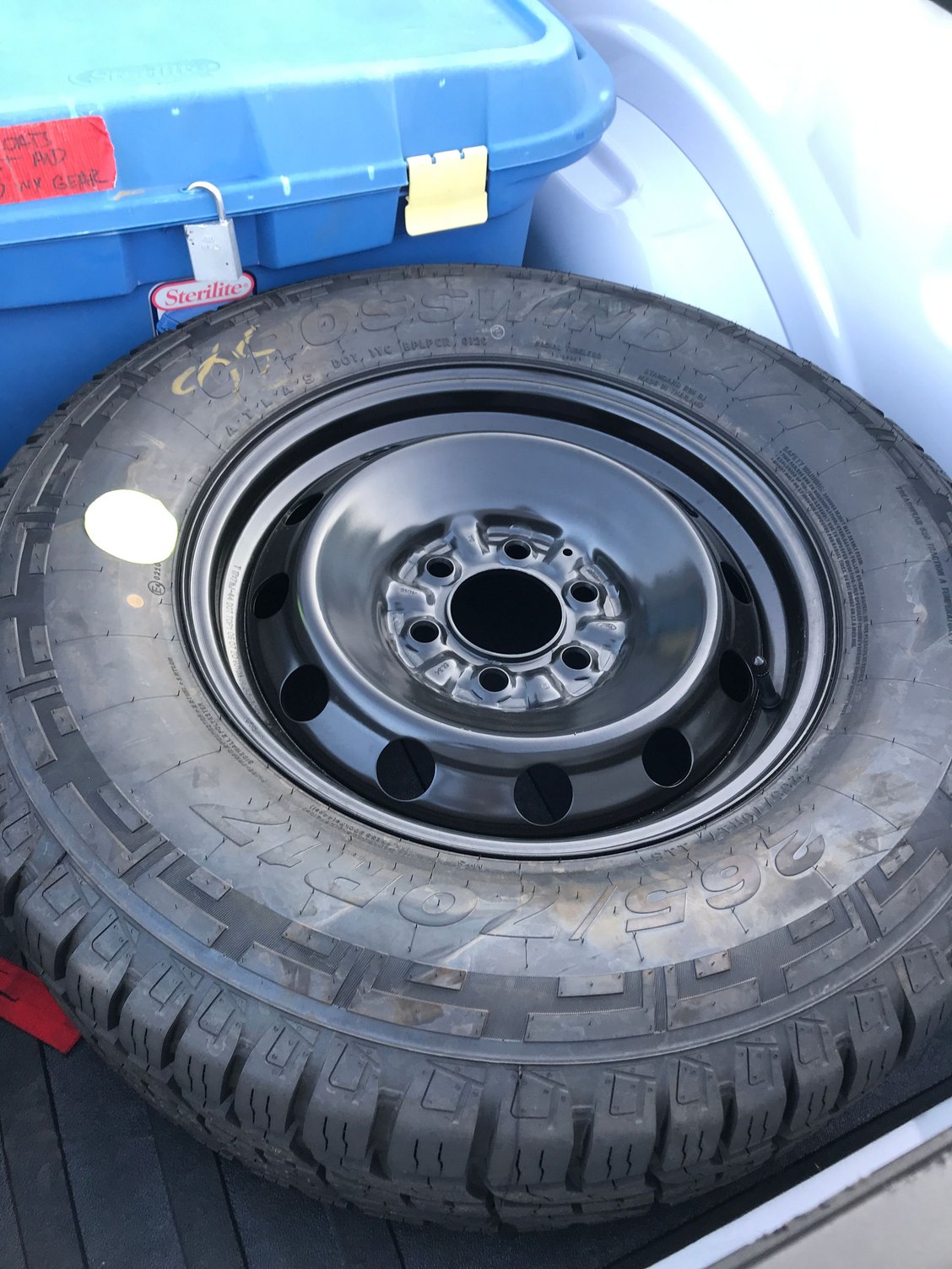 2020, XL, 4x4. 4 Goodyear HTs and a Crosswind AT for a spare. I just put it in the bed yesterday because I'll be damned if I need it in a snowstorm and the stupid crank thing breaks.