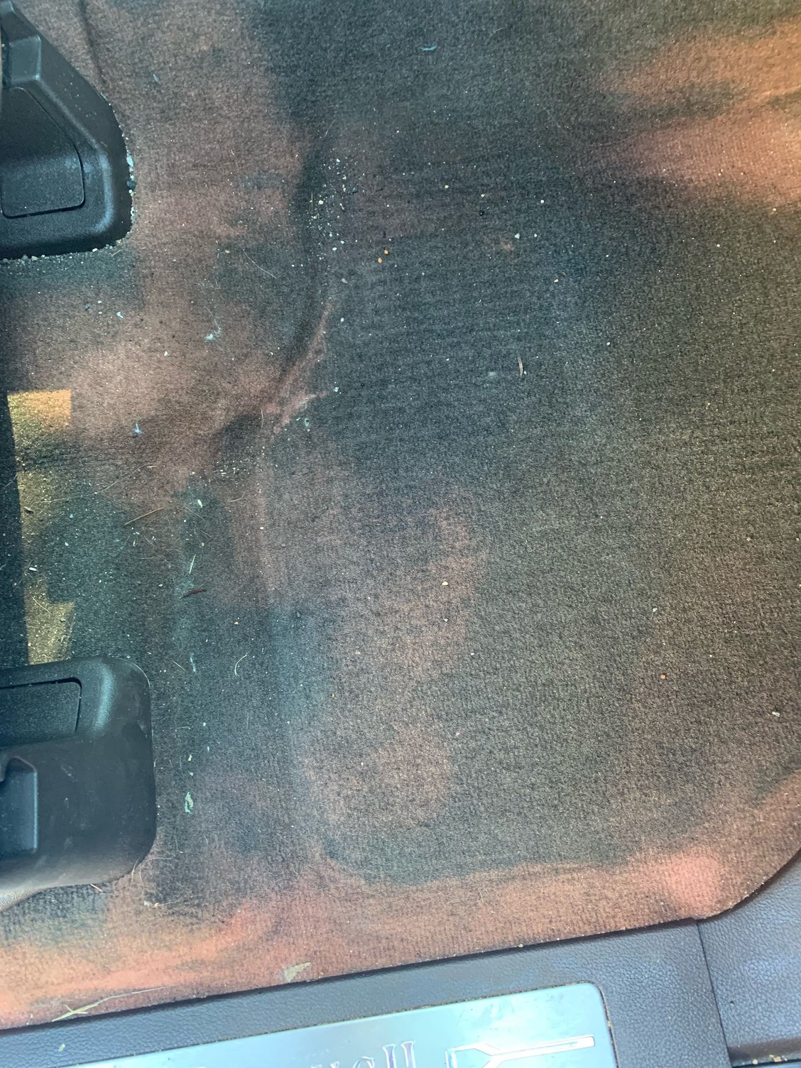 Attaching some pictures that show the black mold that had formed, it was all over. It's a health hazard if you have this problem, the base of the car which is under the carpet won't lose mold that easy, sticking carpet over it is just not going to solve the problem.