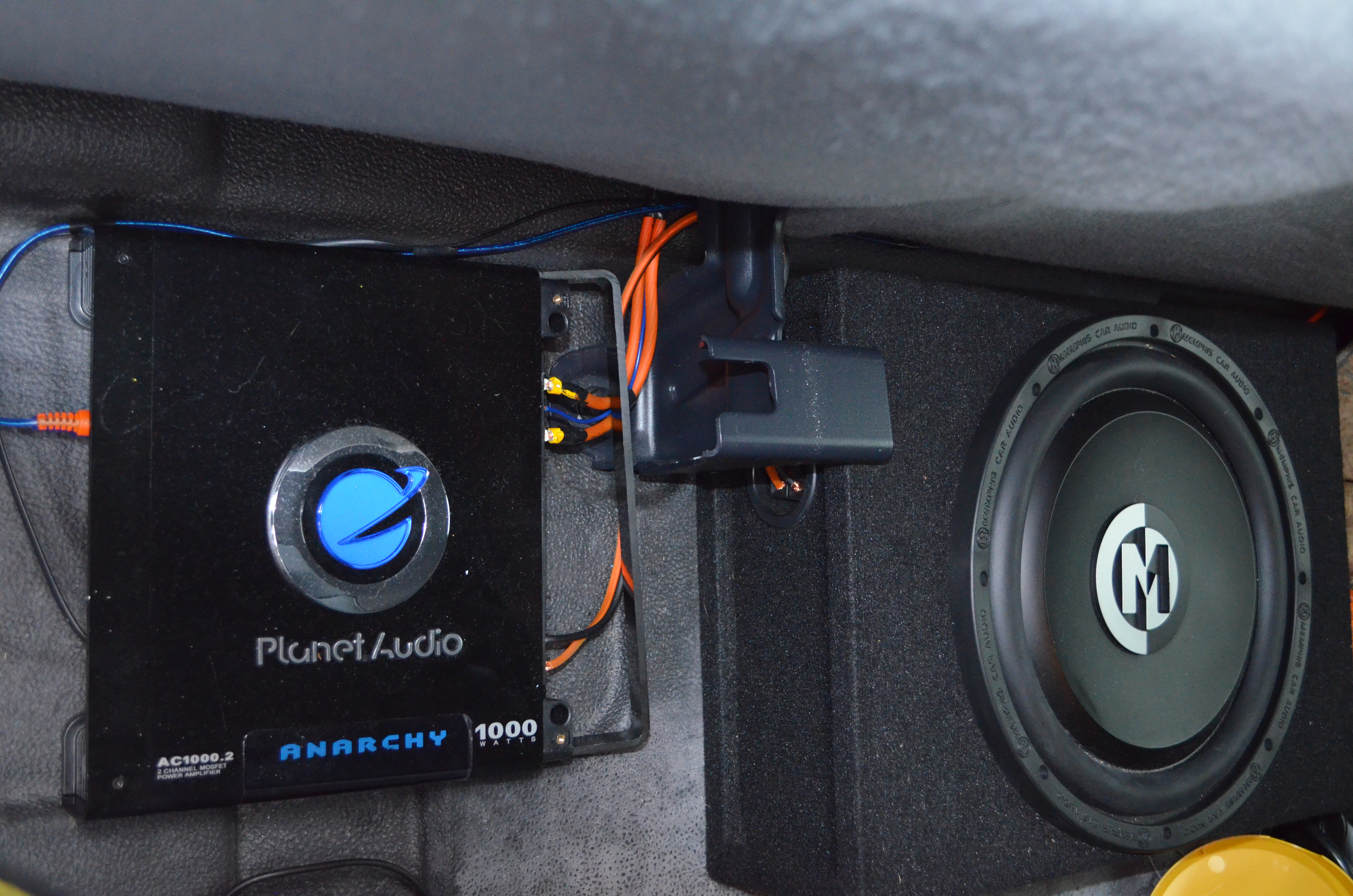 The other thing I noticed is if that amp is really that much power the power and ground wires at the amp are way to small. The should be more like a 6 or 4 gauge. When that
