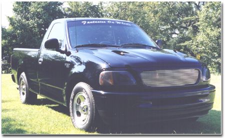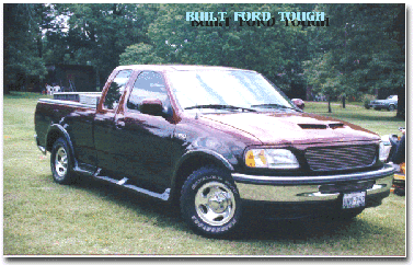 black 97' x-cab 4x4, 5 speed 4.6, black westin nerf bars, 6 cd changer and a 12 premier sub, pilot ground searchers, borla SS split rear exhaust, v-tech oval side window covers
