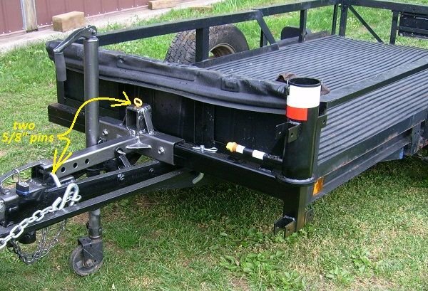 This is as the tongue was originally, I added 22" years ago, but it made the tongue heavier too. Going back as doing so lightens hitch lift and will let the crane put loads on my '77's tailgate ... or into the trailer.. Gonna put them new fenders on after I put the taller 15s on.