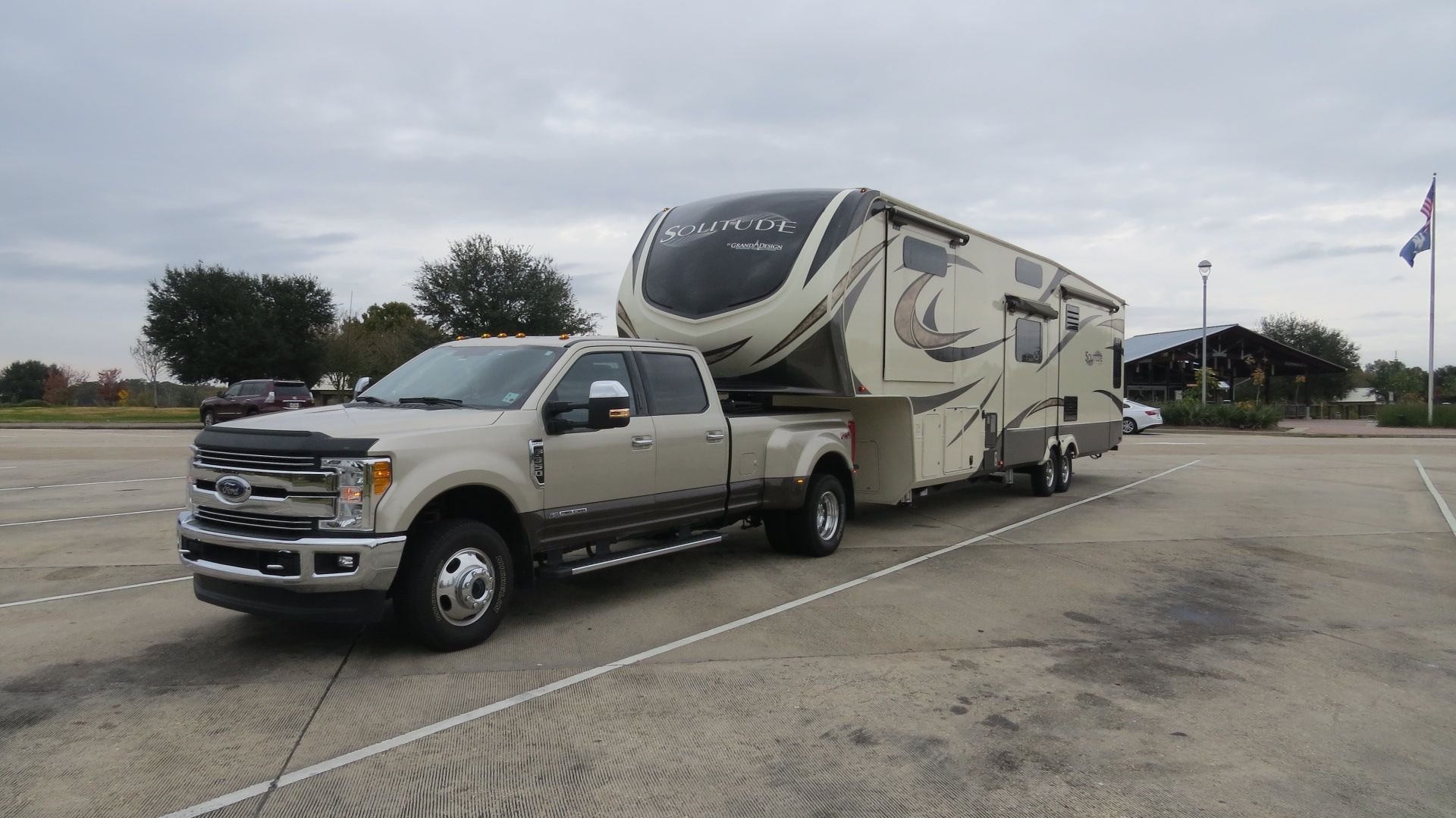 Traded in the toyhauler a few months ago...wife wanted more living area. This truck tows this 16K pound 5'er with ease. Getting 9 to 10 mpg towing depending on speed.