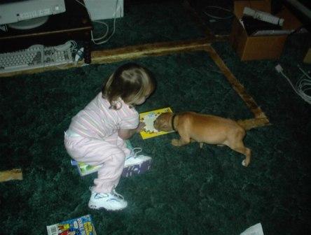 My roommate brought home a Pitbull Puppy for me and the 2 year to play with since i lost all but one of my cats this year.