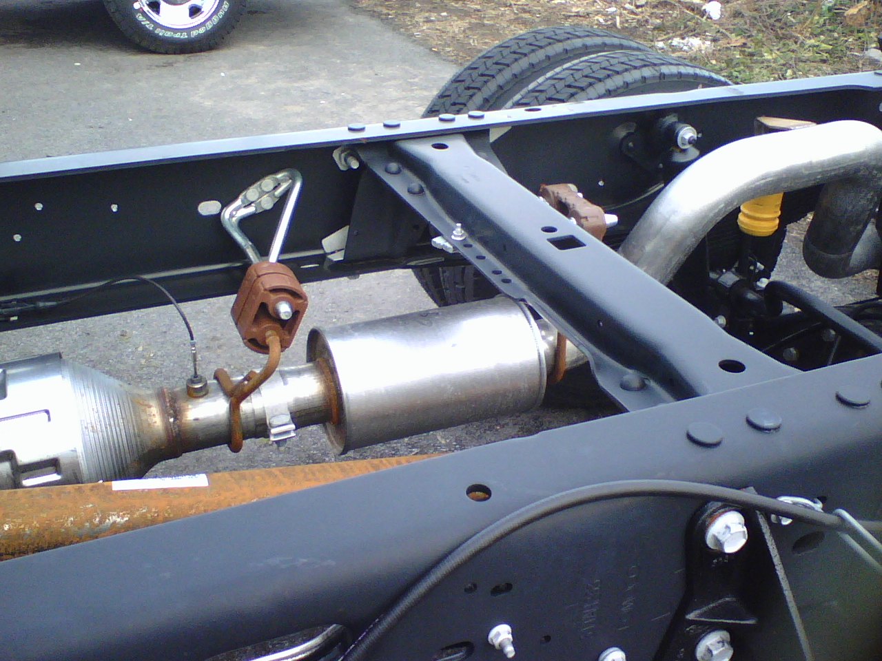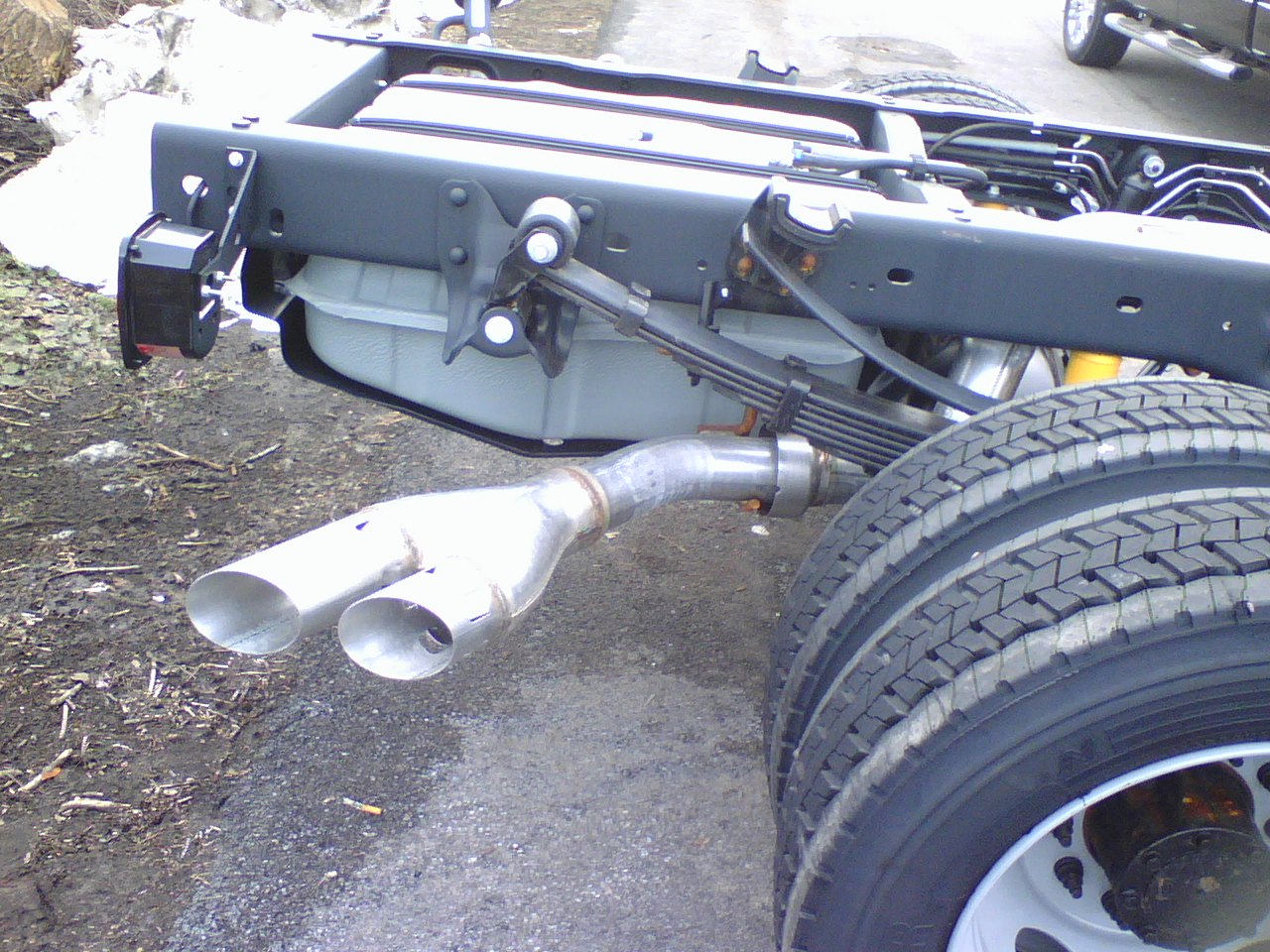 So since this wasn't a normal pick-up bed configuration, where on earth does the spare tire go, since that last tank near the back is the fuel tank? I don't know much about diesels, so why is the exhaust so different looking than a normal gasoline vehicle? I think that that one sensor after the muffler(?) is the exhaust gas temperature, no?