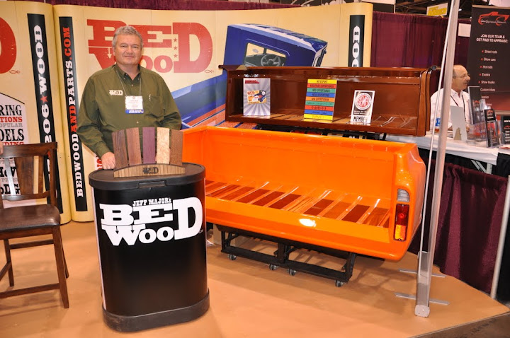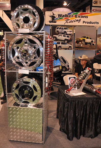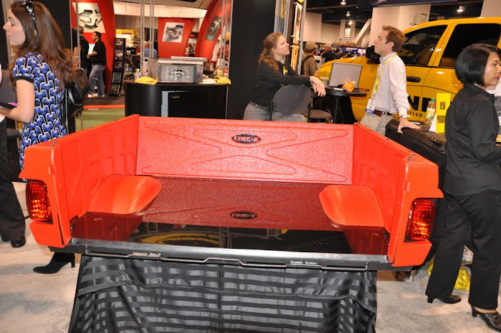 Linex showcasing booth their outstanding spray on bedliner in a flame red as well as their super heavy duty pour in bedliner which looked a reflective as glass in their booth