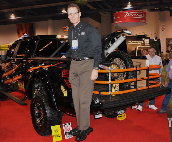 Mark Wronski showing off some of AMP Research's products and how sturdy they are