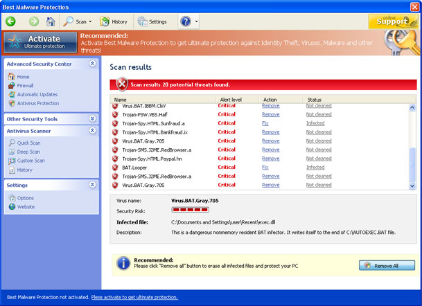 Hey folks, if you get a pop up from Best Malware telling you that you have viruses, showing you the infected files, it is a scam. They want $49 to get rid of the stuff they are telling you is on your computer that is not really there. There is a special procedure for getting rid of the Best Malware invasion. Google Best Malware if you get hit. I'm glad I took my time checking this out rather than over reacting.