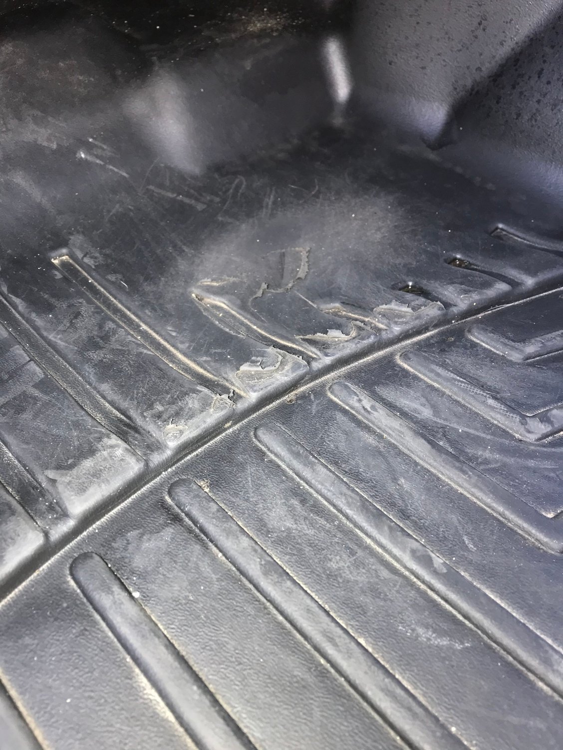 I have Weathertech mats in the front, back, and bed of my 2014 F150 and have had no issues at all. In fact, they look brand new. I hate it that you're having an issue. I did check out their warranty and it specifically states they are not warrantied for wear. I assume that's why they didn't do anything for you. Kinda sucks when they say the mats have a limited lifetime warranty but the warranty doesn't cover any wear. Sounds like they should last as long as the truck, at least that's my idea of a "lifetime" warranty. I can only suggest that you look for a torn rubber mudflap from a big rig and cut your own. Mudflaps are just some kind of tough. That's what we used for years and some of them still looked good after 20 years on the ranch in the grain dump trucks. Can't begin to tell you how bad we abused them as we used them for cutting boards, put on the ground to work on a truck, skids, etc and they still looked good.