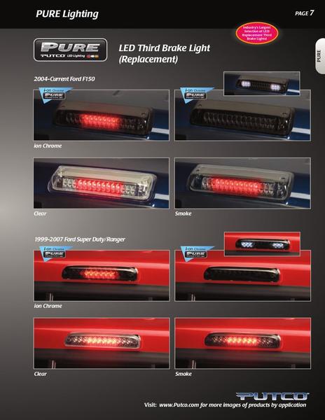 Does anyone have any pics of Putco's Pure LED 3rd brake light (smoke color) on an 04-08 F150? The only pics that I can find are of the clear lens. Trying to decide between the Ion-Chrome and the Smoke color lens. I'm looking at diffirent options right now, so any suggestions on brands would be appreciated (no Recon please). I may just make them myself but still open to suggestions.