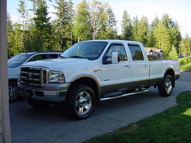 I'm new....virgin post here! I just picked up a very clean 2003 F250 KR (Estate Green over Arizona Beige) Supercrew 6.0L 4wd SB Diesel w/ 22k and another 3 wks of OEM warranty. Nice truck. It replaced a buggy 2004 F150 FX4 5.4L Supercrew w/ 22k. The 120 mile drive home convinced me that this was a VERY good decision (I love this truck)! I dig the torque and the power and the sheer size.