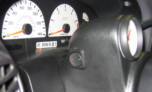 It is shown in the on position (with the truck off so the LED isn't lit.) When the truck is running and I flip it forward to that position, the green light comes on and it starts recording to the internal WBC memory.