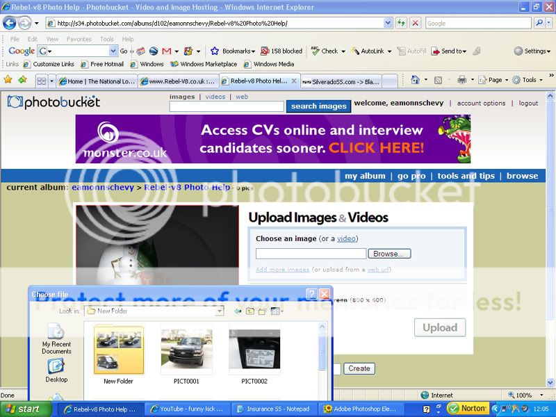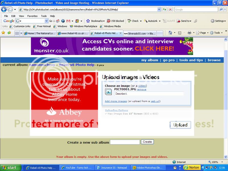 Then once the account is open click on the UPLOAD IMAGES BROWSE button and a smaller window will open look for the photo you want to upload,(usually in the my pictures folder on your hard drive or another location which you have saved you pictures in. CLICK ON THE PHOTO AND HIT THE UPLOAD BUTTON.
