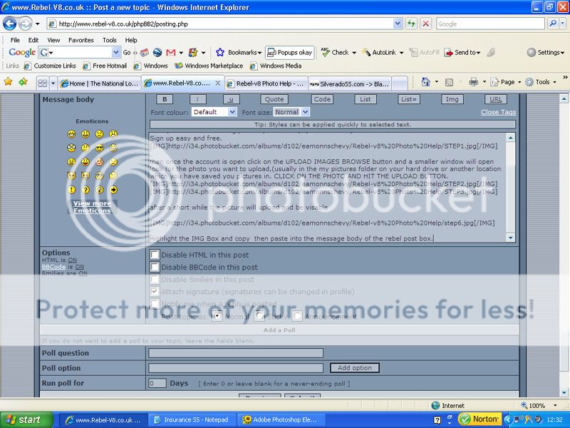 Step One. You will need a Hosting Site there are loads of free ones on the web, www.photobucket.com and www.picturetrail.com being probably the most popular and easy to use.