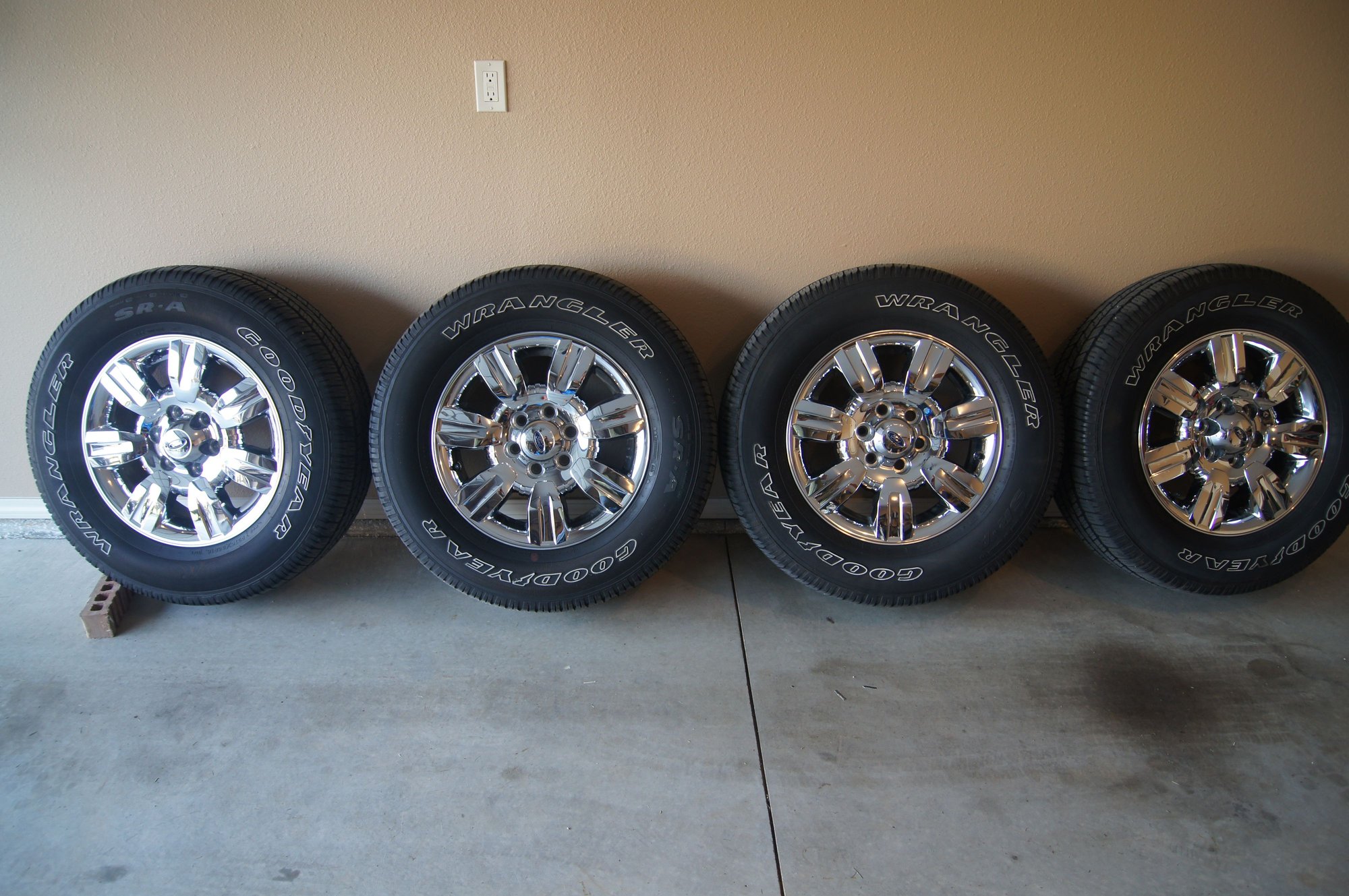 -Tires are 275/65R18 114T Goodyear Wranglers that had right at 20K miles on them when I took them off. Goodyear rates them at 50K miles and tread depth ranges from 7/32 -9/32. They came out from the factory at 13/32 so at worst case they have 50% tread left.