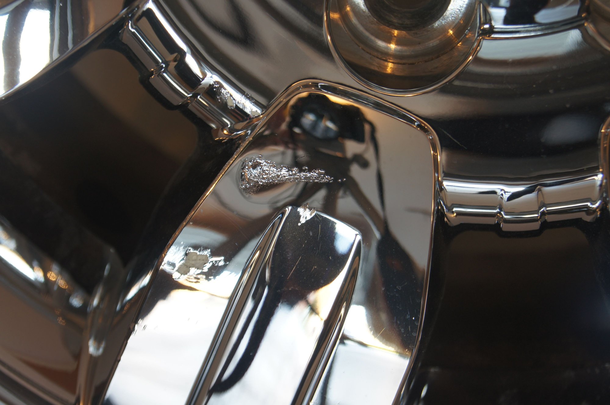 Wheels appear to be in incredible condition with the exception of one of them which has slight damage to the finish of one of the spokes and a scratch to the center cap. I am honestly not sure how it got there,. Look at the picture of all four wheels together and I can’t tell which is the bad one which will give you an idea of how little it’s noticeable. Regardless I’ve included close ups of the center cap with a 16 megapixel DSLR—I don’t want to surprise anyone once someone buys these so full disclosure and I have circled the damage on the full size picture of the wheel. Looks to me like it could be touched up but I never bothered since I bought new wheels and tires for my truck. The rest do not appear to have any curb rash or detectable scratches in them other than normal.
