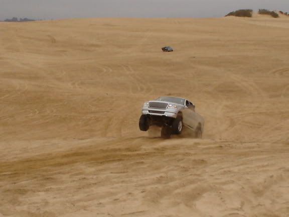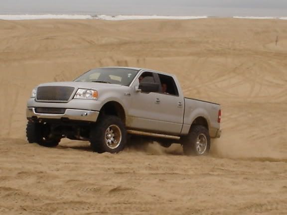 It was so smooth when it landed.....I don't care what anyone thinks about the Pro-Comp lifts.....They hold up great and they are not stiff what so ever. Im going back in 17 days to go BIGGER. I had my tires aired down to 13 psi and the tires were throwing the biggest rooster tail. I also had to pull a Excursion with a 18 ft. travel trailer that was burried to the doors out of the sand.