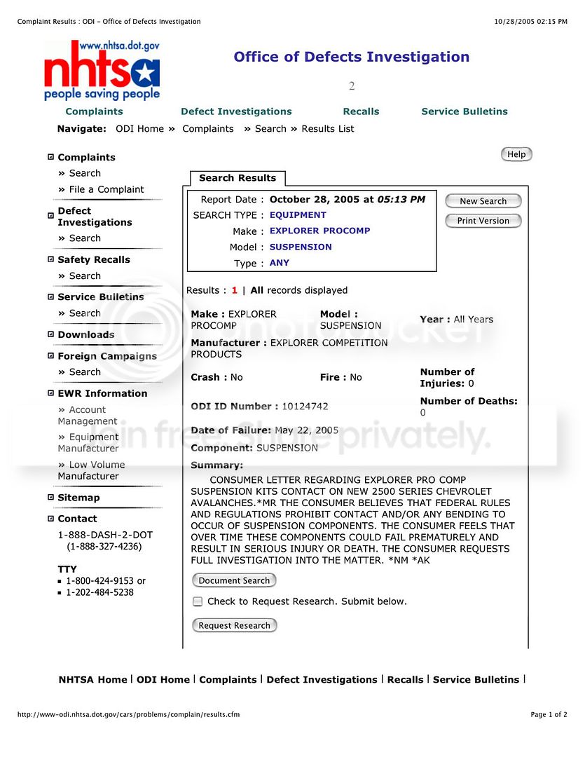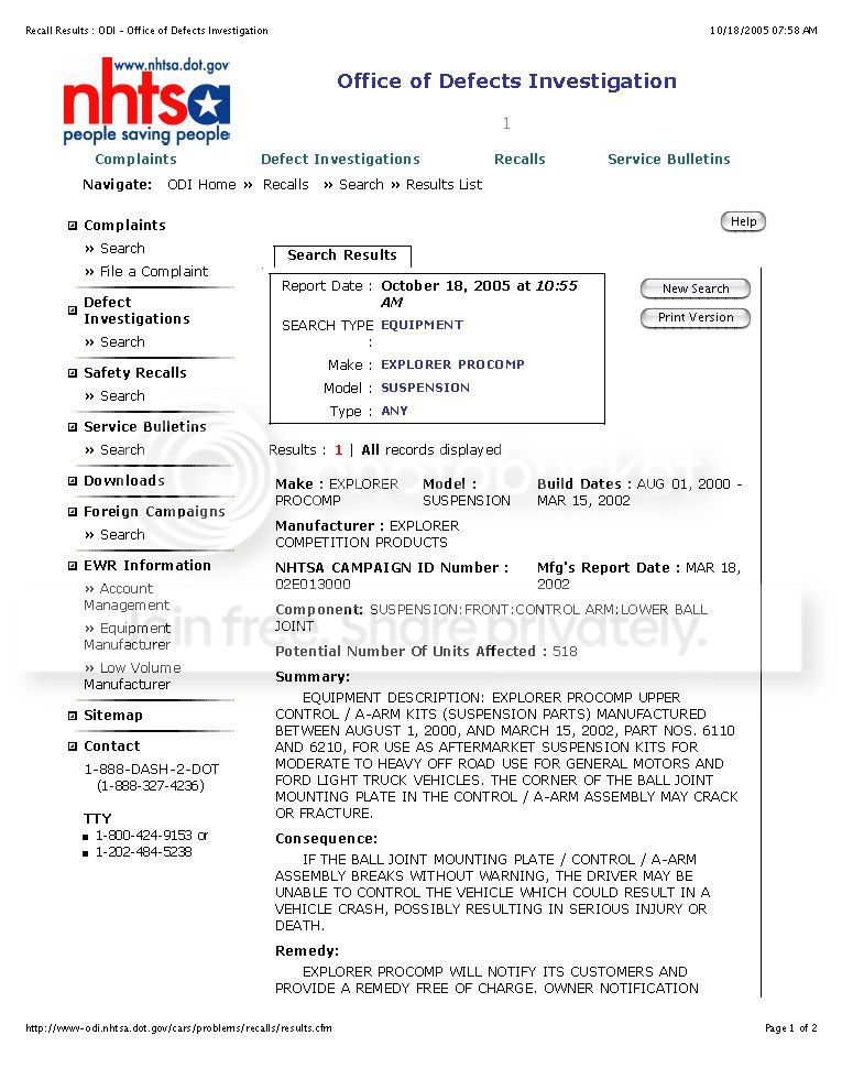 It pissed me off so much, that 4WP owner of Explorer Pro Comp, hasn't even sent out a letter to thier customers to inform and fix this problem, so I filed a compalint with the NHTSA to make PRO COMP replace these parts instead of grinding them down.