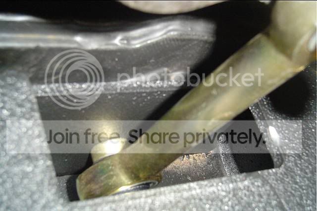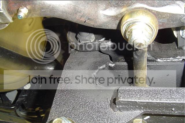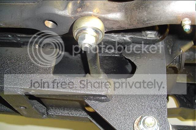I have put 400 miles on the kit so far and was crawling around under my Avalanche truck checking things out when found a problem. There are 2 heim jointed links that run thru windows in the front drop crossmember. They connect from the crossmember to the centerlink. Both of these links have been hitting on the outside of the windows in the crossmember. One of the links (passenger side) is actually bent a little from this contact. Photo is of the passenger side link, you can see the little notch in the crossmember on the right side created by this contact.