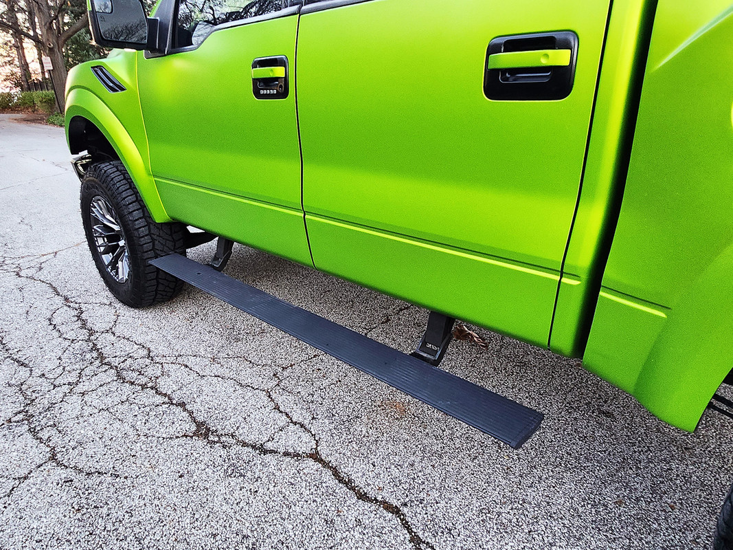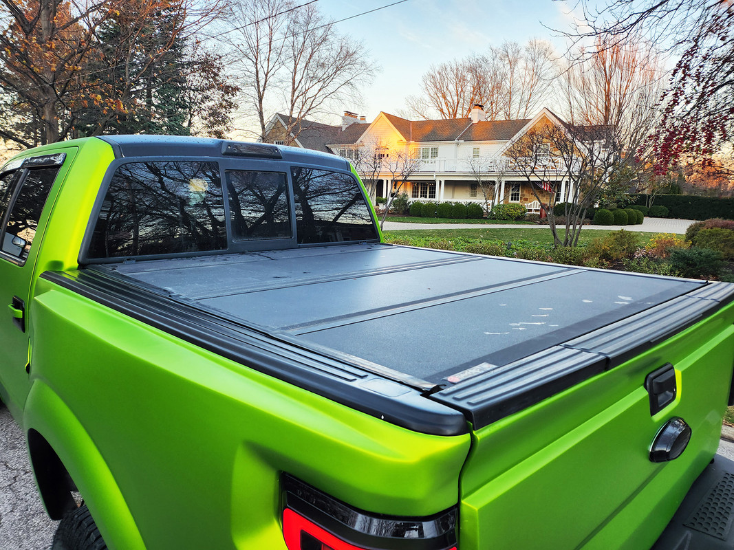 This truck was hit in the drivers door, and the perfect canvas to showcase what our company could do. We tore it down and installed a FiberWerx 2017 Raptor body on it, and added a rough country 6” lift and a ton of other stuff listed below. It was a great show truck, but I closed the business in December of last year due to health issues. In April of this year, I decided to give it one final hurrah, and one took it to one of my shop foremen’s new shop, and had the entire engine torn down and rebuilt, as well as upping the power and rebuilding the transmission with a McLeod performance rebuild kit. I also did a new limited-edition Matte Dynamic Lime wrap, new tesla style navigation system, new wheels and tires, and a bunch more.