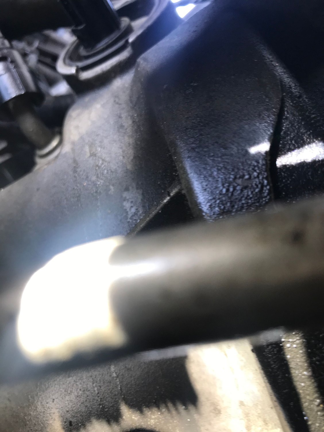 Drive slowly the rest of the way home. It has some hesitation going up hills but still feels ok. No bucking or stalling and only a slight rattle from pass side. Pull the battery out and find a crack in the pass side valve cover. Think that is the ‘crunch” I heard this morning. Absolutely no oil leaking before then. Scanner only has one code p0012.