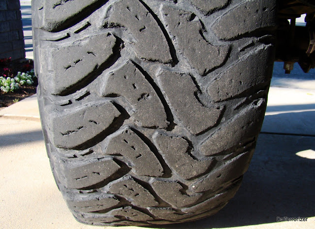 When I was running the 38x13.5/18 I did noticed the tires were a tid heavy. So I made the decision to down size to a set of 37x12.5/18 Toyos Open Country MT but Toyo did not carry such tire size at the time cause they were on back order and so was Nitto. But I did find Hankook carried a DYNAPRO MT RT03 : 37X12.50R18, so I decided to give them a try. Well, last week I came back from my second off road trip and I must confess, so far I'm very impressed with them. Comparing them to the Toyos I did notice that the Toyos had visible gashes, slashes and pieces of thread missing on my first off road trip. As I said B4 this is my second off road trip with the HanKook and I can't find 1 single gash or slash on them. A couple of the boys from this forum accompanied me on this last trip so they can attest to how much I truly abuse my tires.