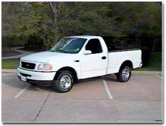 This white 1998 F-150 with the Texas Sport Package (not the STX package) belongs to Don Williams. This modified XLT features such add-ons as an Alpine CD player, Sony amp, and Pioneer speakers, as well as a Toff spray-in bed liner, Bug Deflector II painted to match, Street Scene Sport Mirrors (also color matched), AutoVentshade vent visor, and tinted windows. Future mods will include the requisite K&N air filter, cat-back dual exhaust and a topper or tonneau cover. I wish the Texas package was available in Georgia! |