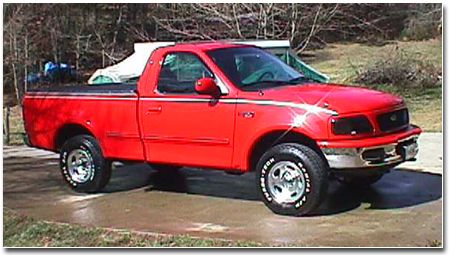 Another truck with a nameless owner...this 1997 F150 XLT 4x4 ride the streets of Asheville, NC and has mods that include a factory Ford soft tonneau cover, K&N filter, GTS headlight covers and GTS window visors and Alpine speakers. |