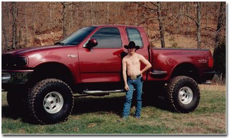Consider this as the first picture on the lifted truck page...this 97 F-150 from Billy Adcock of Nashville, TN has a whopping 10" lift rolling on 16 x 10 Weld Outback wheels with 39/15/16 Mickey Thompsons. The stereo is an Alpine cd unit with Infinity 6 1/2" up front and 5" x 7" in the rear, along with 2 - 8" Kickers sub with Soundstreams amps - to protect it all is a Viper alarm. To improve the looks and performance even more, it has upper and lower billet grills, chrome nerf bars, K&N air filter, 4:10 grears. Believe it or not, this show truck has only been off-road once! |