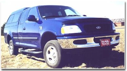 Matt Adams from Littleton, CO has affectionately named his F-150 "Babe." (yep, after the ox) His mods include Smittybilt nerf bars, a Bedrug bed Liner, Snugtop Hi-Liner Topper, and taillight covers. For more pics and details you check out his web site. |