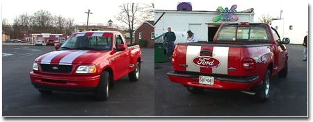 This is a new pic of James Howard's '98 F-150 flareside with the STX package. Not many mods so far with the exception of a Duraliner bedliner, but more to come. He's got time...this 16 year old Webmaster of the Solomon Islands web site has plenty of time! He has setup an entire page with more pictures of this truck at http://www.solomons-island.com/truck. Thanks James! |